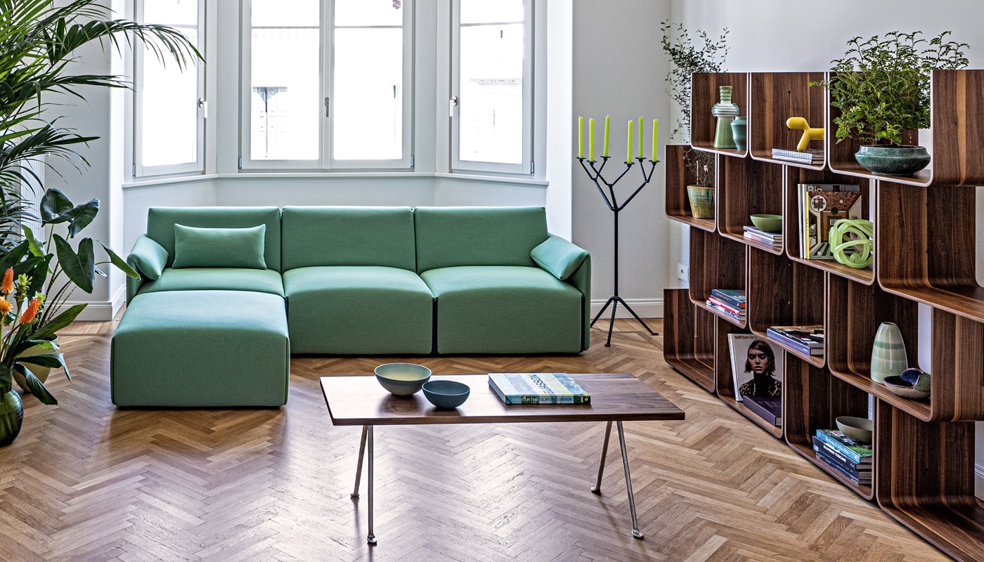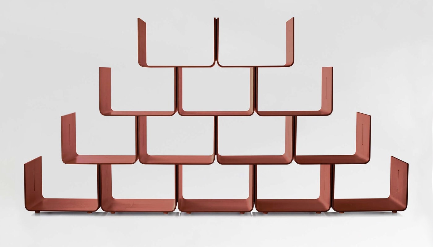 Elysée, libreria modulare di Magis, sviluppata dal designer Pierre Paulin su un progetto degli anni ’70, ha un tratto scenico sempre contemporaneo.