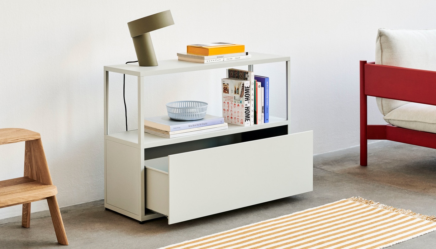 Il sistema di archiviazione New Order, progettato da Hay insieme a Stefan Diez, dispone di una tale varietà di elementi che si abbinano tra loro, da rendere possibile una componibilità praticamente infinita.