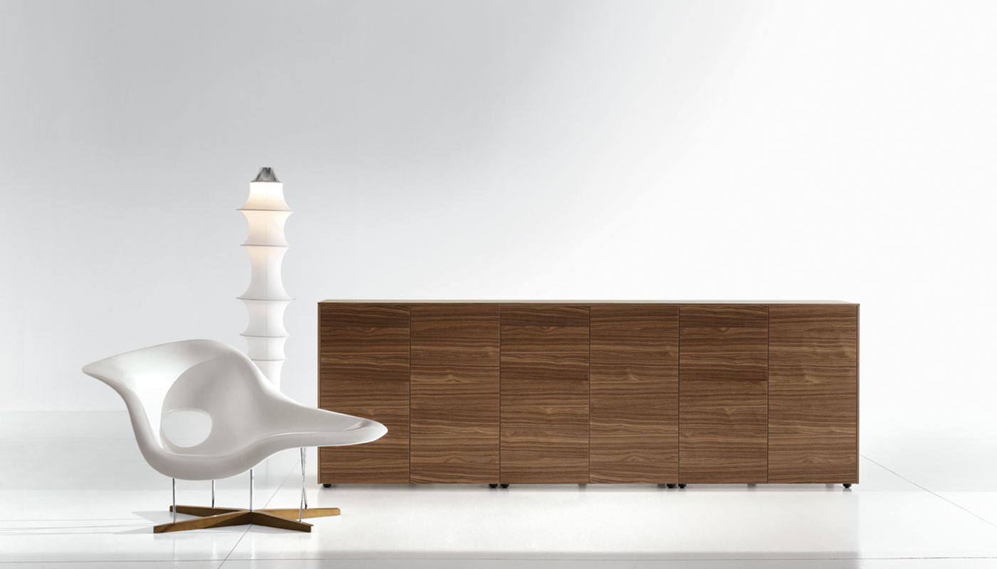 Open di Della Chiara caratterizza l’ufficio e gli ambienti di lavoro con uno stile ultramoderno e ottimizza gli spazi grazie all’alto potere contenitivo e ai ripiani interni componibili.