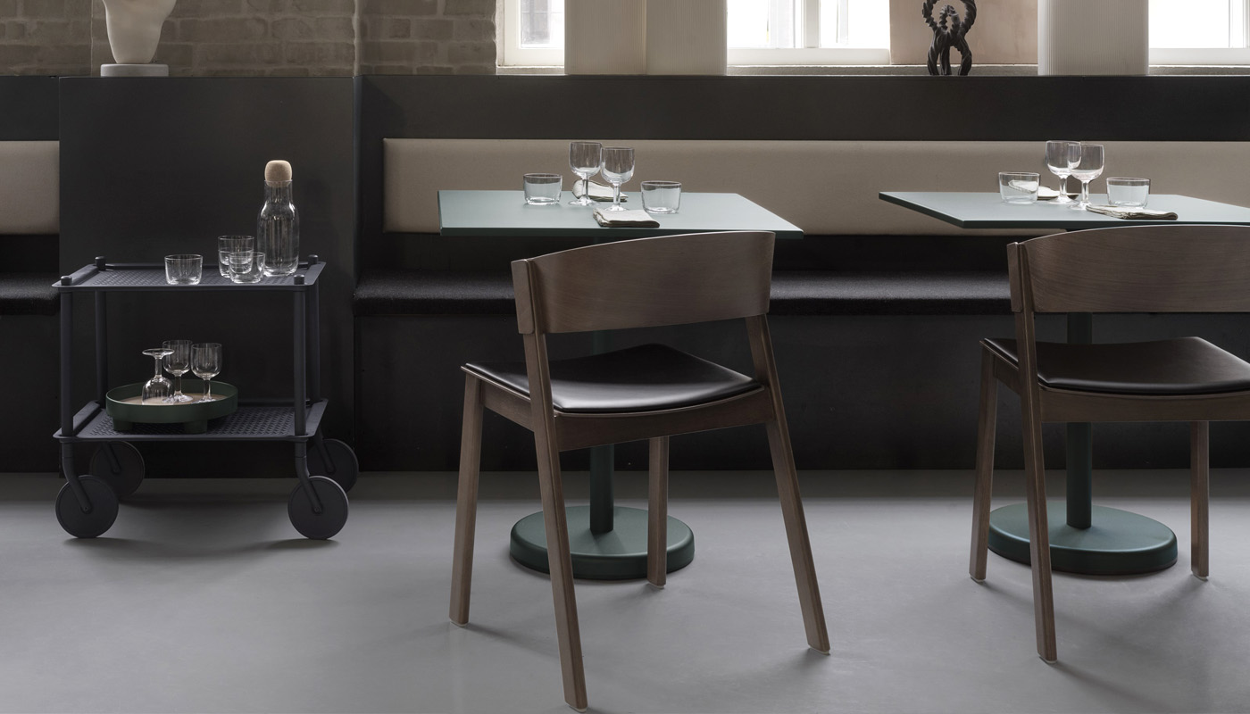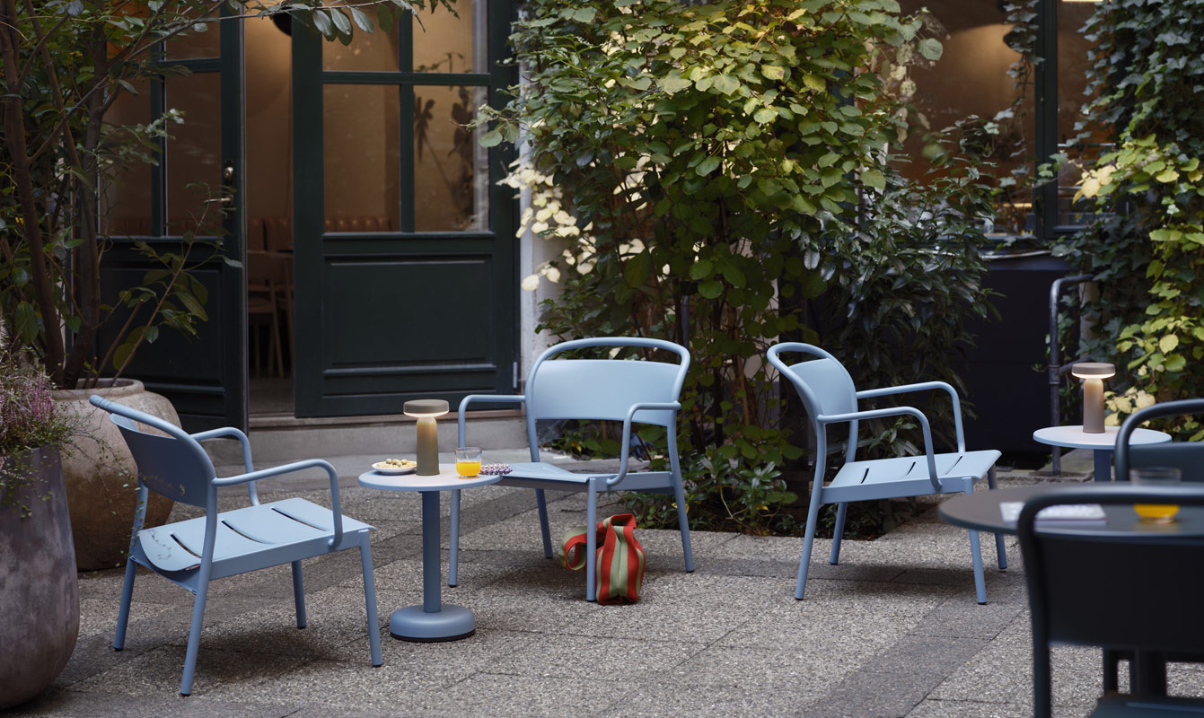 Il design del tavolino Linear Steel Café Table di muuto si ispira al concetto di incontri: linee che si intrecciano, forme che si combinano e materiali che si fondono.