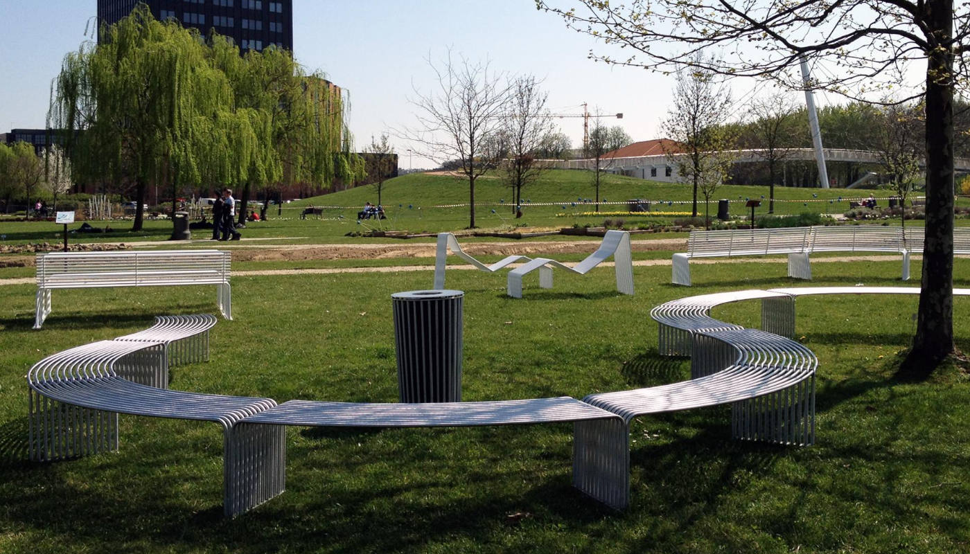 Realizzato in acciaio riciclato 100%, si distingue per il suo design industriale pulito e rigoroso, capace di integrarsi nei contesti urbani più moderni.
