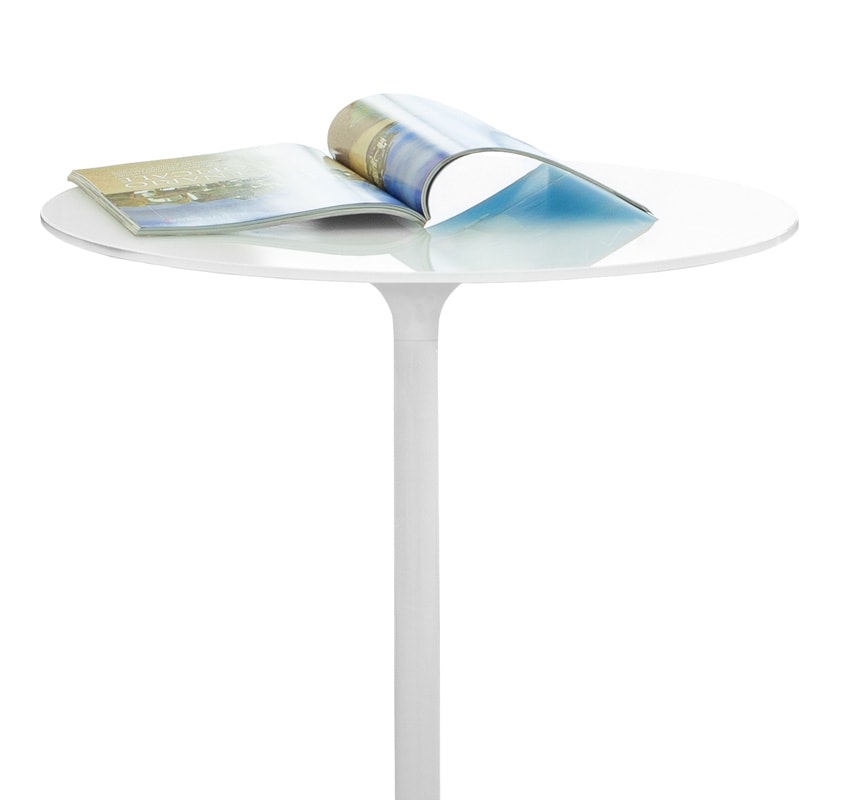 Su richiesta, Poppy è disponibile con piano in cristallo dal diametro di 60 cm: contattaci per maggiori dettagli.