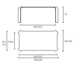 Il tavolo in vetro è disponibile in due modelli differenti nelle dimensioni ma di identica altezza.