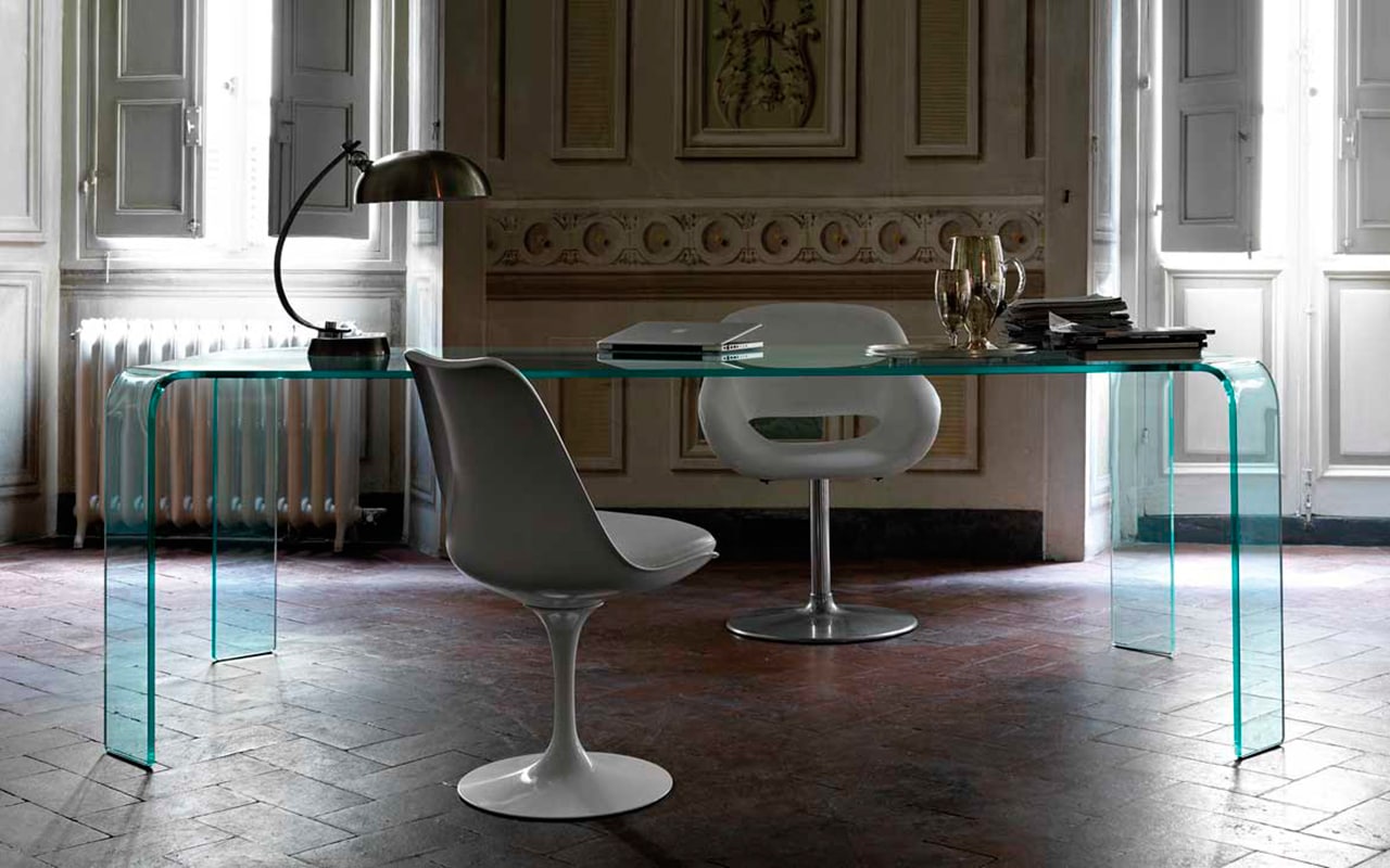 Ragno di Fiam è un tavolo monolitico in vetro di design, perfetto in qualsiasi ambiente, dall’ufficio direzionale allo studio professionale in casa, dalla meeting room alla zona living.