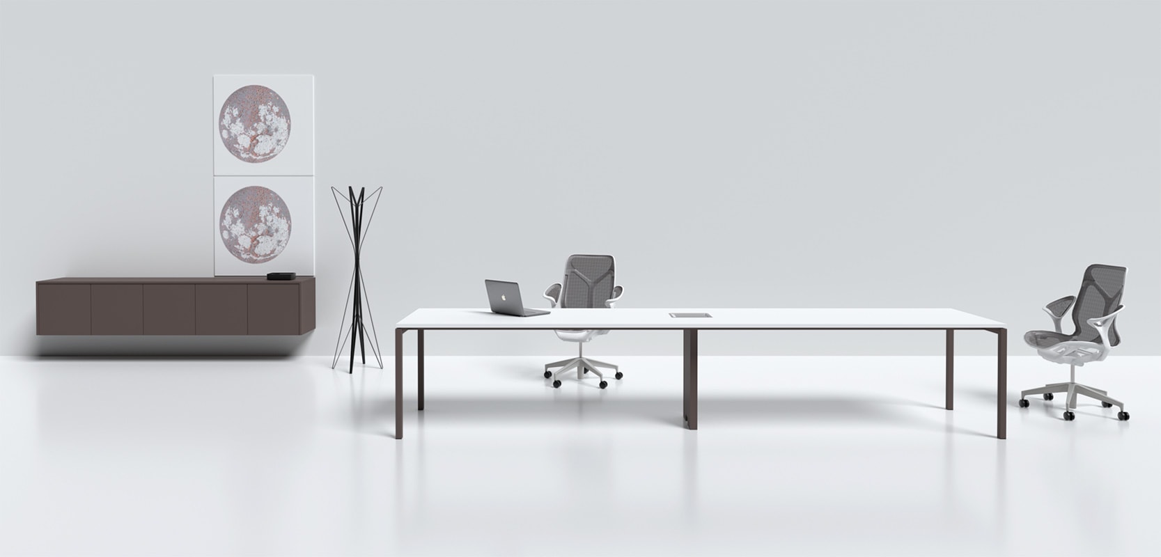 BBTECH, il tavolo di Della Chiara pensato come scrivania per ambienti direzionali, operativi e sale riunioni, rappresenta l’evoluzione della collezione BigBox.
