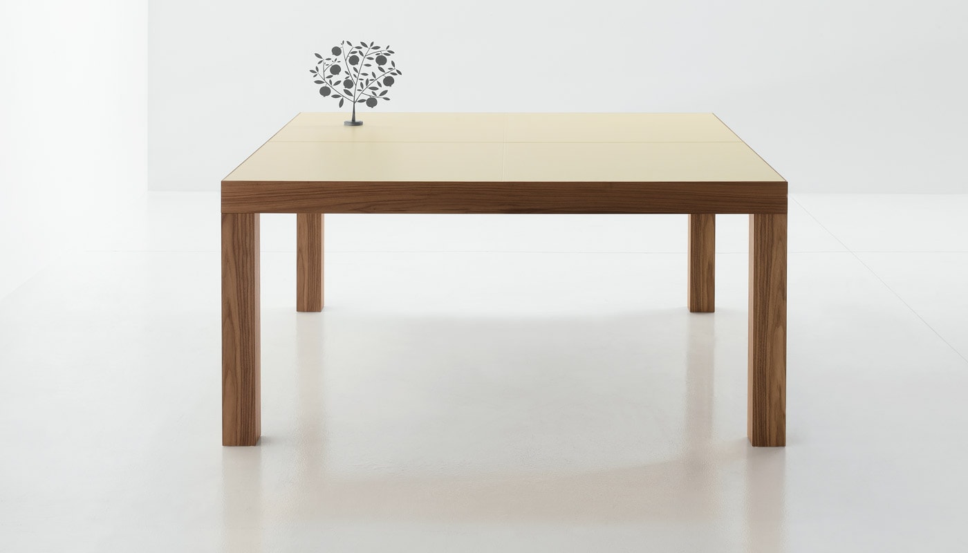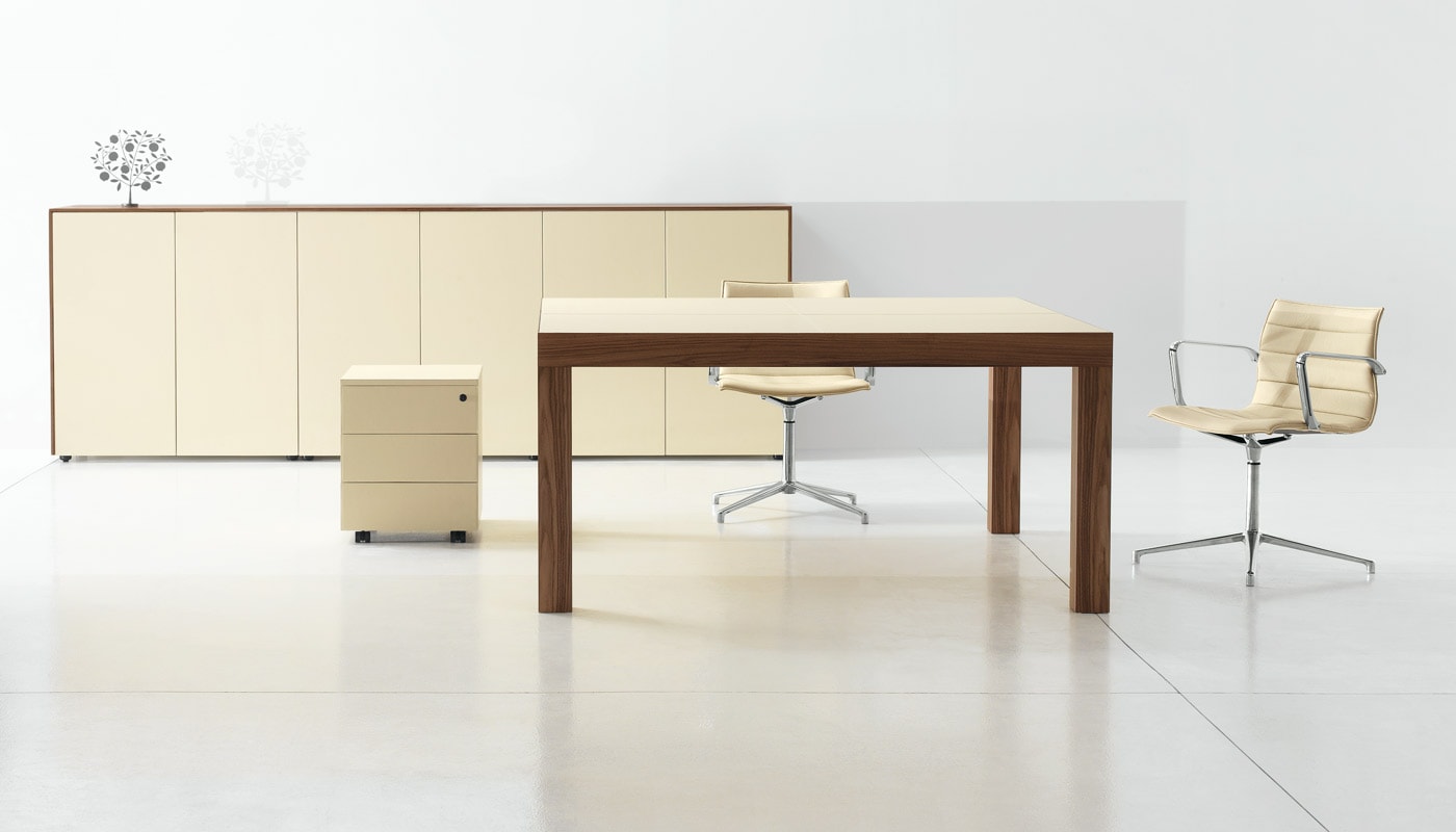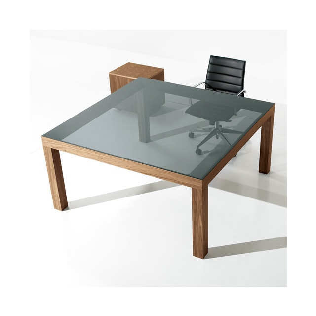 Un tavolo di ampie dimensioni pensato per la sala riunioni o come scrivania per l’ufficio direzionale, per arredare con uno stile contemporaneo che si esprime in materiali di elevata qualità e bellezza.