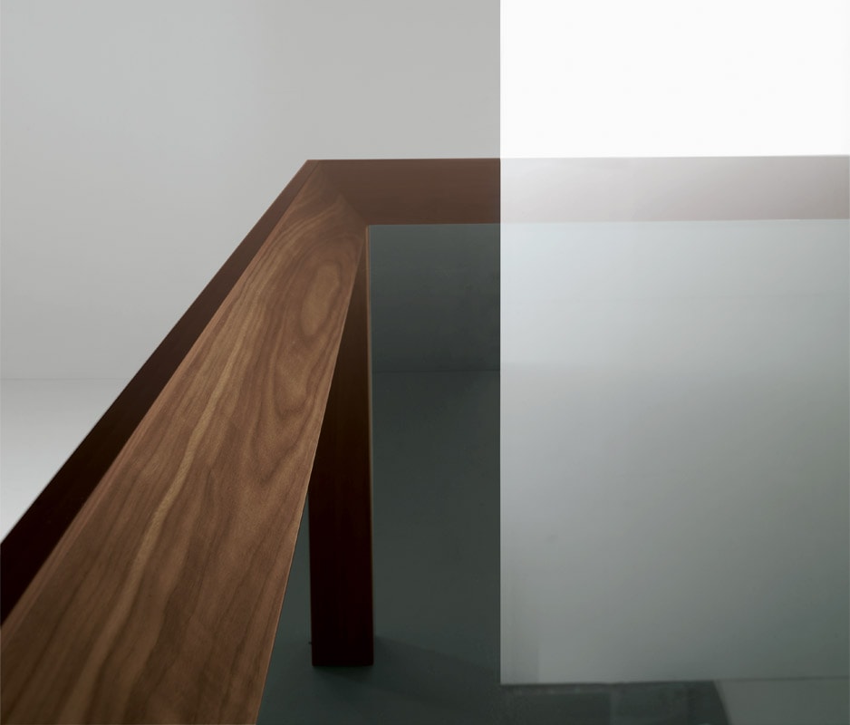 Erasmo si compone di telaio, piano a incasso e gambe in massello impiallacciato in legno noce canaletto e spigoli rinforzati.