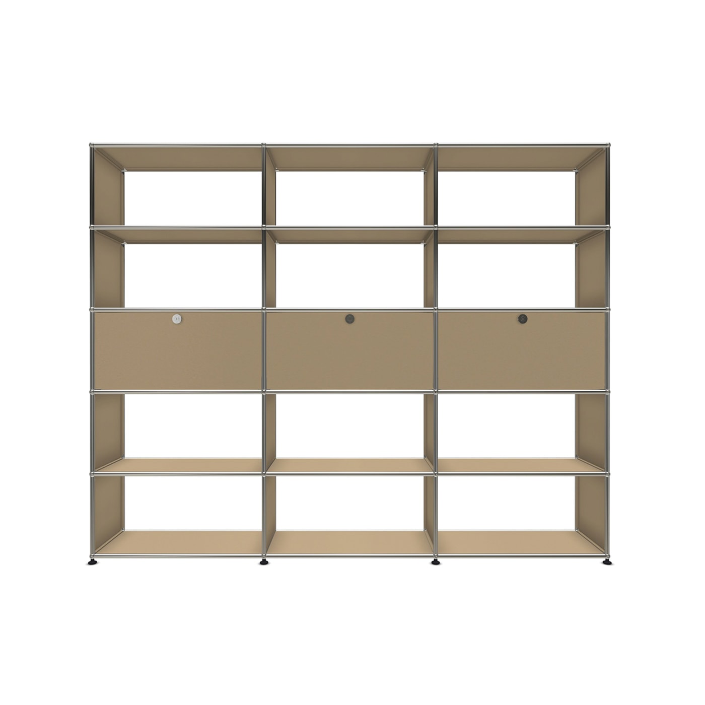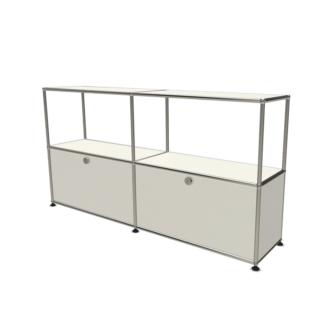 Lo scaffale USM Haller è attrezzabile anche con Serratura C: la serratura può essere azionata facilmente con una chiave magnetica e uno smartphone, grazie alla duplice tecnologia (RFID e Bluetooth) e tramite un’Applicazione USM intuitiva e pratica.