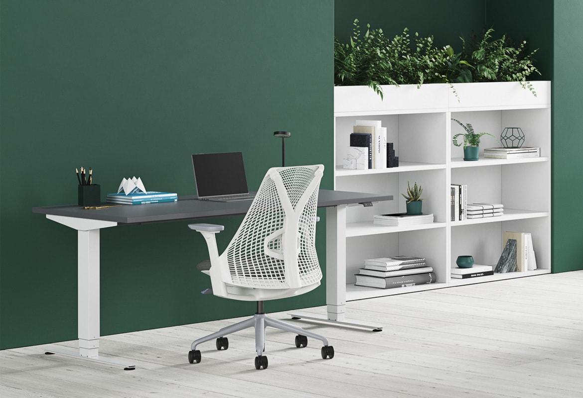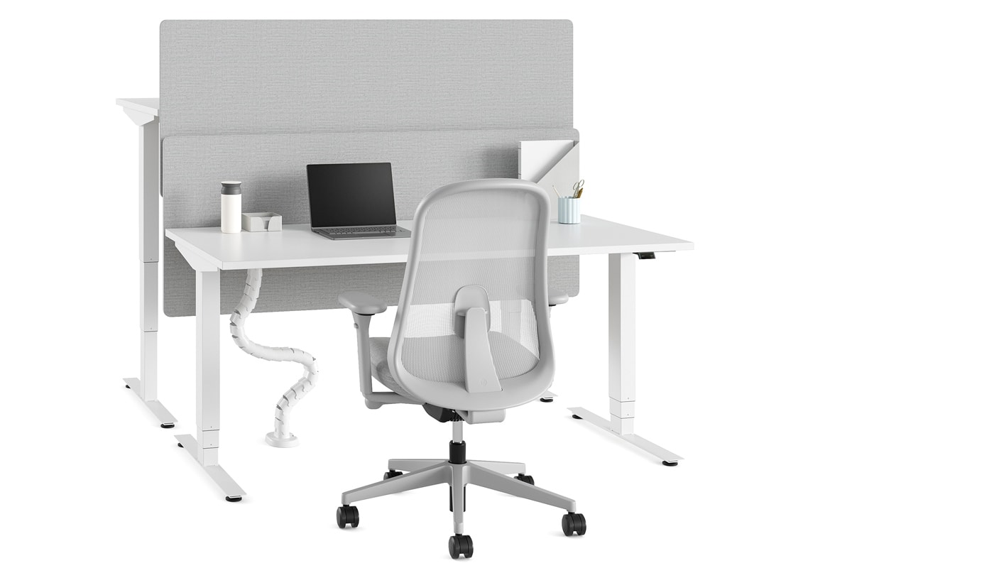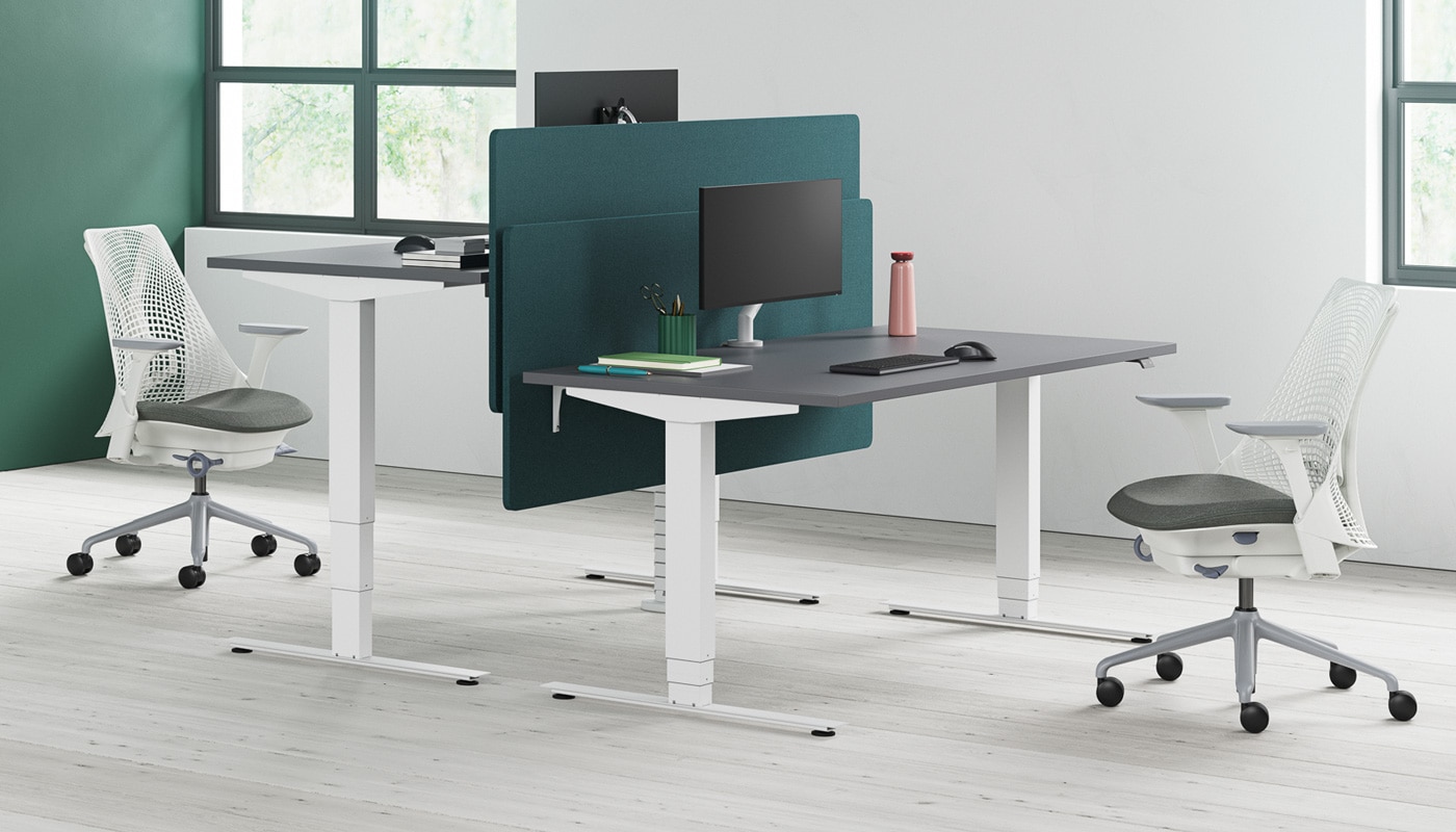 La scrivania regolabile Nevi di Herman Miller consente di progettare il tuo ufficio con semplicità.