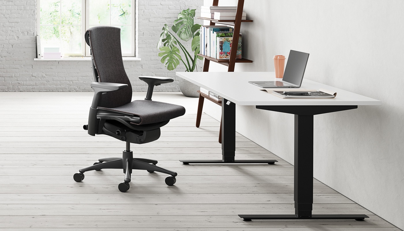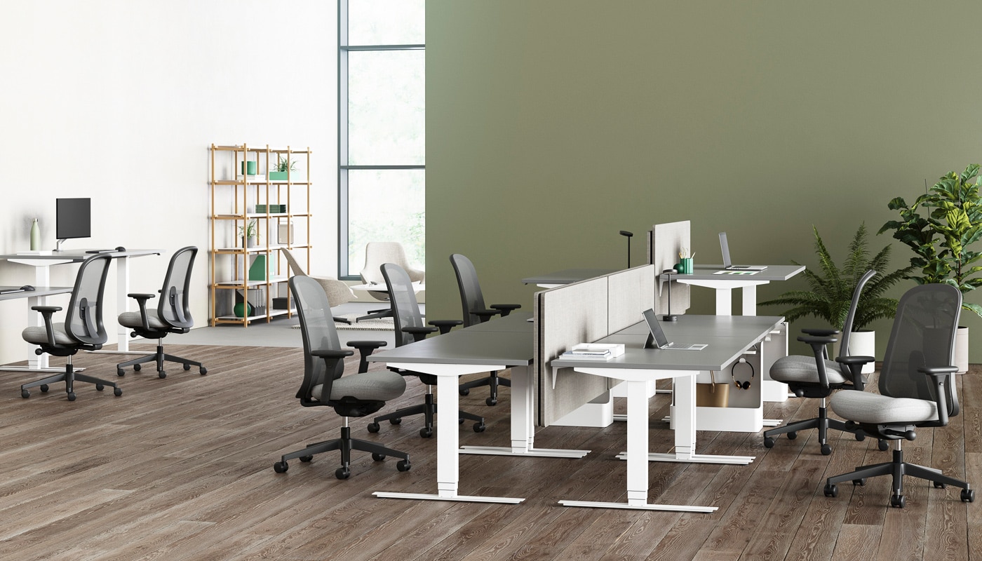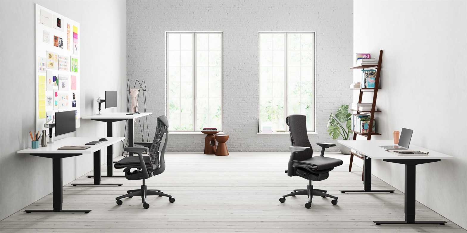 La scrivania regolabile Nevi di Herman Miller consente di progettare il tuo ufficio con semplicità.