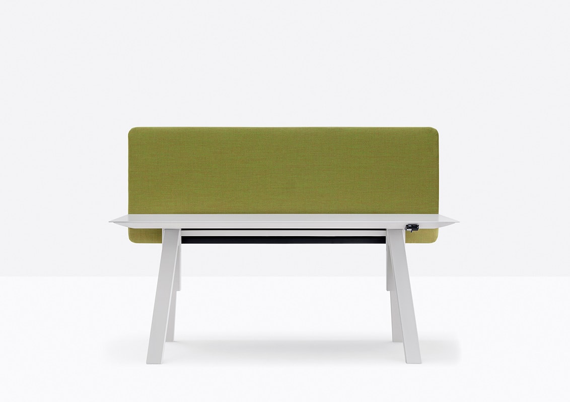 Su richiesta, la possibilità di inserire un pannello fonoassorbente rivestito in tessuto per garantire privacy acustica e visiva, ideale negli ambienti condivisi.