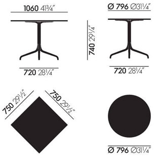 Belleville tavolo fa parte della famiglia dei Belleville Tables di Vitra, che comprende una serie di elementi modellati sulla tipologia del classico tavolo da bistrot, con gambe sottili dalla linea fluida.