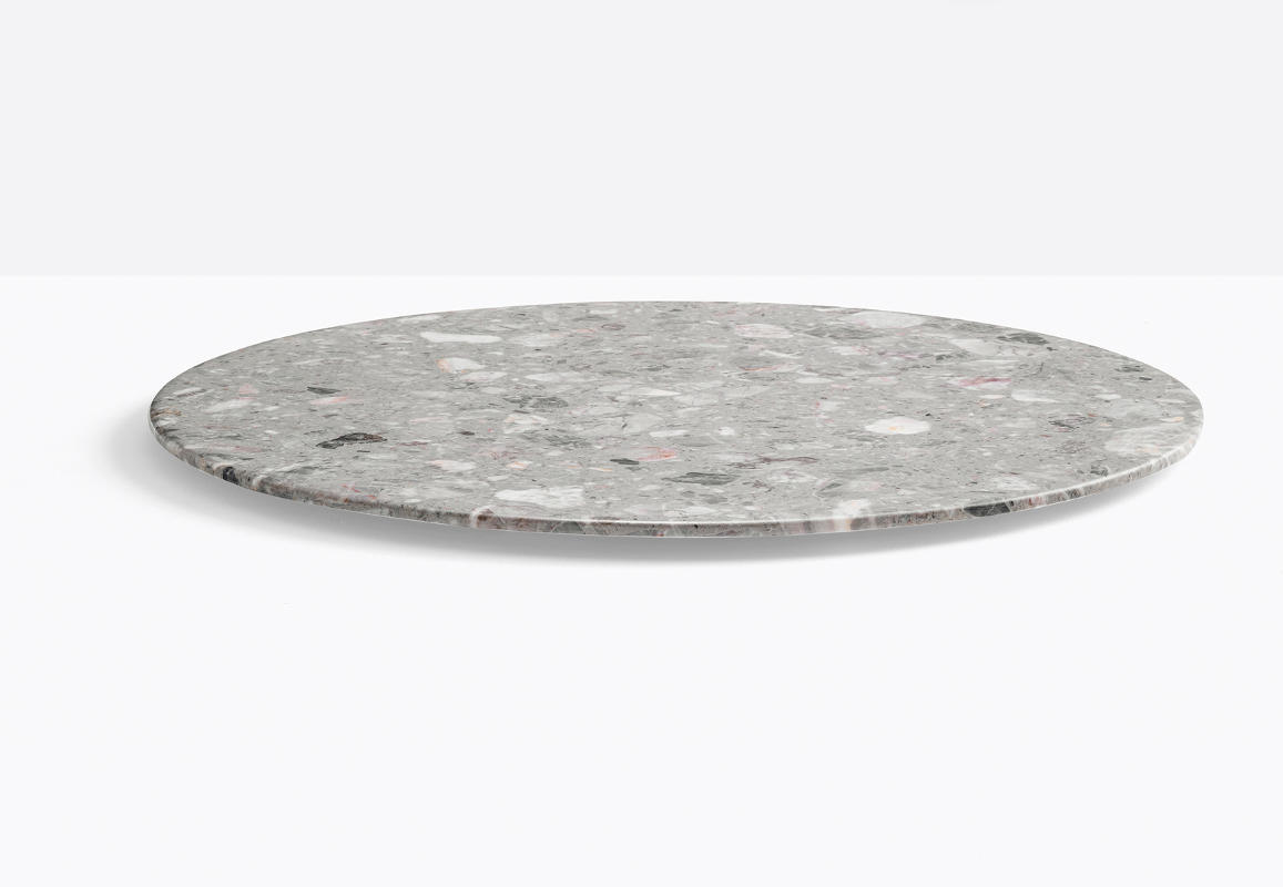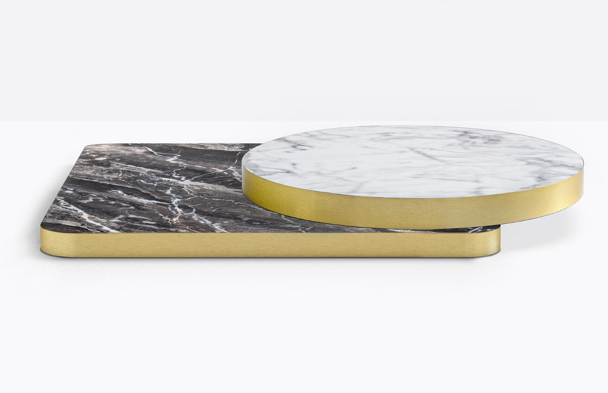 Disponibile in tre altezze e con piani di diversa forma, spessore e finiture combinabili tra loro.
