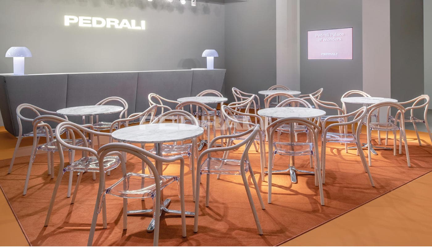 Pedrali pone particolare attenzione alla sostenibilità: i materiali utilizzati rispettano rigorosi standard ambientali, con processi produttivi certificati che riducono l’impatto ecologico.