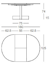 tavolo allungabile: L. 180 - P. 125 - H. 74 cm.
