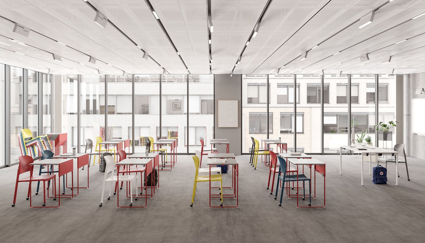Leggerezza e praticità si fondono armoniosamente nei tavoli impilabili per didattica Class di Della Chiara, offrendo una soluzione versatile per ogni spazio ed esigenza.