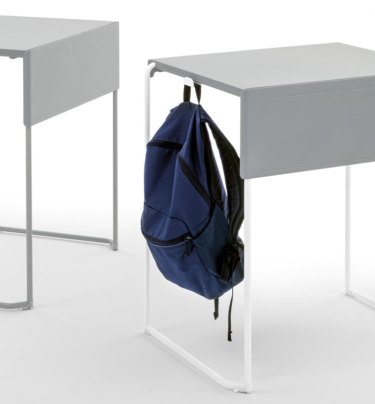 Lo speciale sistema di aggancio di cui è dotato, è studiato per allineare i tavoli o può essere utilizzato come pratico porta zaino, rendendo Class ideale per ambienti educativi.
