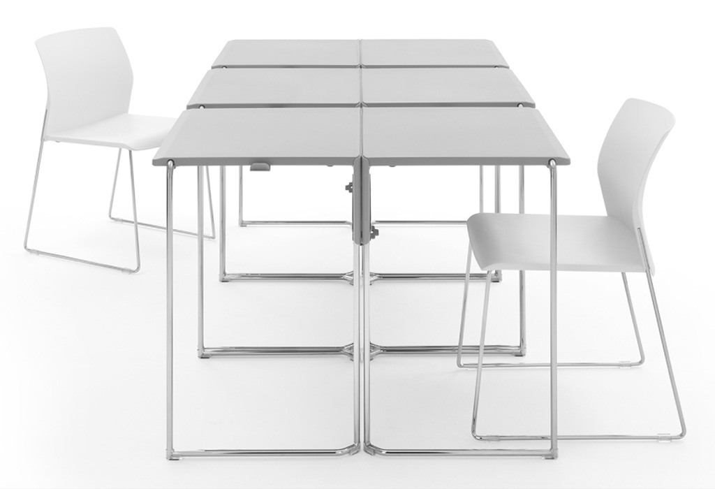 Per agevolare il trasporto e il riposizionamento dei tavoli è disponibile un comodo carrello, opzionale.