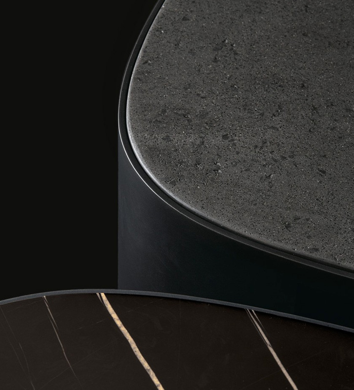 Le forme organiche dei tavolini Koishi, proposte in più dimensioni, e le loro eleganti finiture, permettono la creazione di un ambiente fortemente personalizzato.