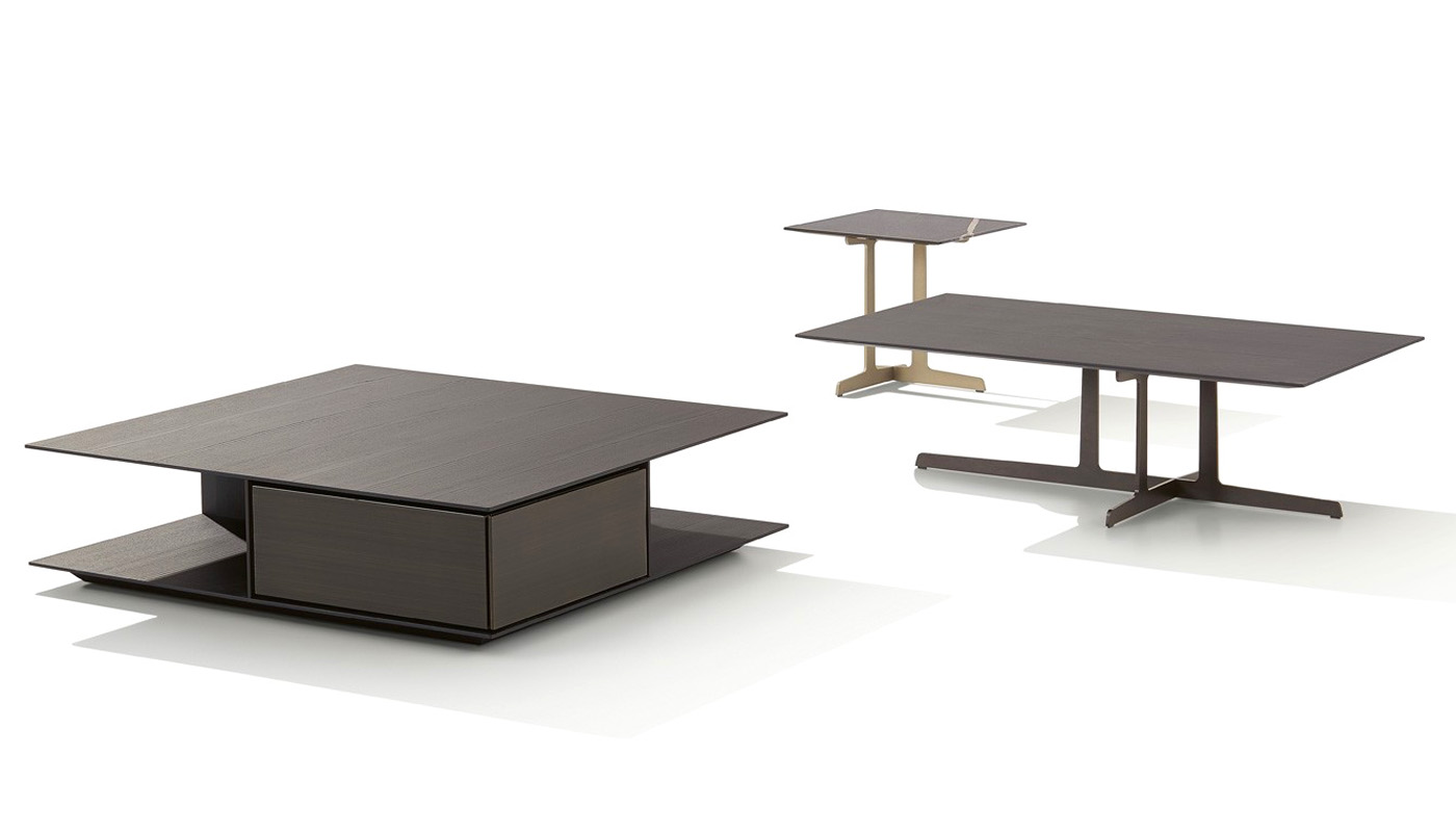 Diversi per forma, dimensioni e struttura, i tavolini Westside condividono linee essenziali e materiali pregiati.