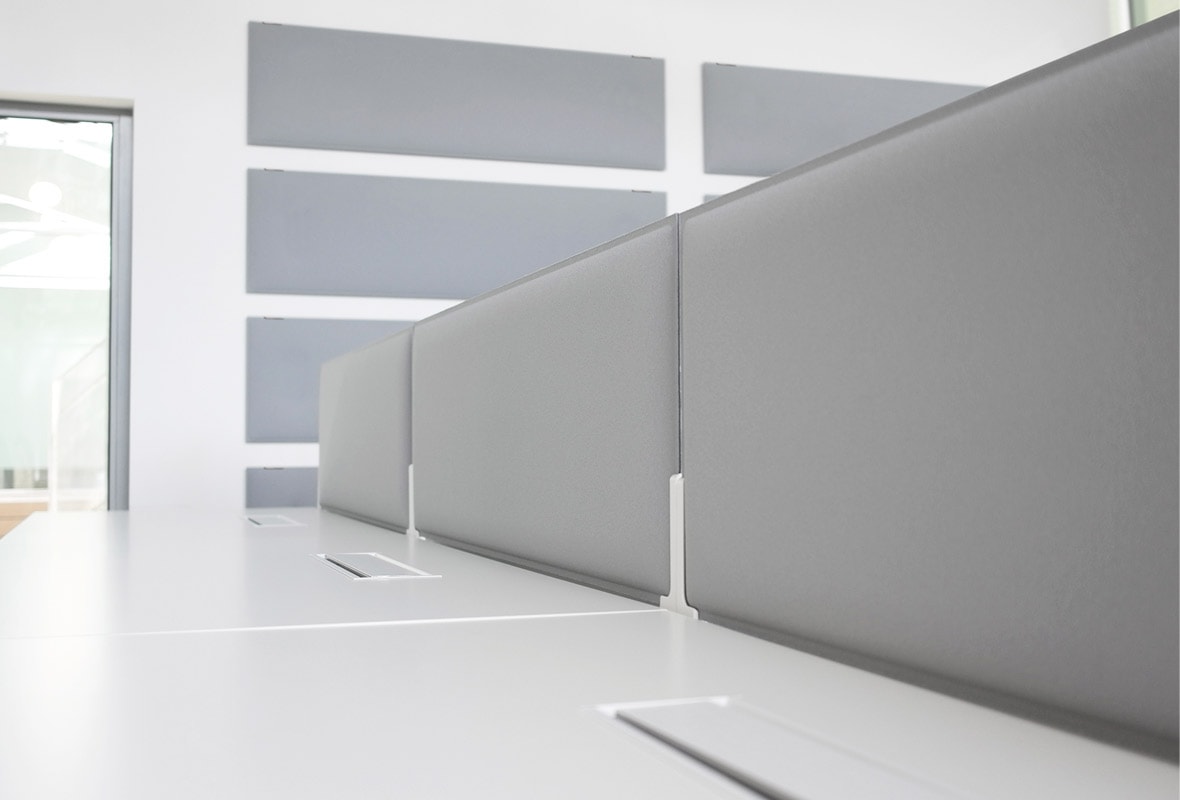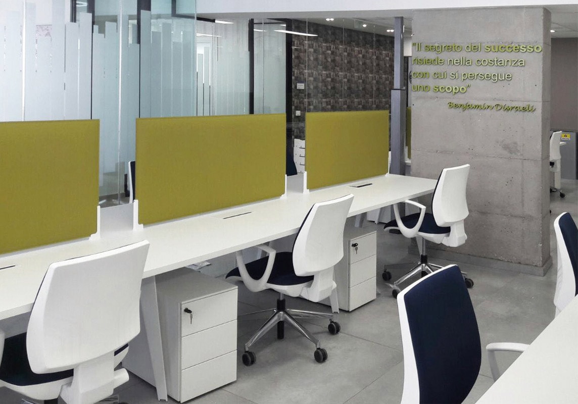 Questo permette di ridurre il riverbero tipico degli open space, trasformando l’ambiente in uno spazio più silenzioso e produttivo.