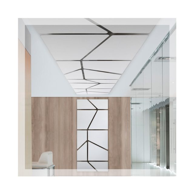 È difficile distinguere l’aspetto estetico da quello tecnico, perché entrambi convivono in perfetta armonia: superfici leggere, geometricamente irregolari e orientabili che modellano lo spazio con eleganza, offrendo al tempo stesso un’eccellente performance acustica.
