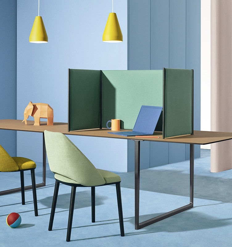Pensato per rispondere alla richiesta di configurabilità degli spazi di lavoro condivisi e garantire un adeguato livello di comfort acustico, il pannello divisorio fonoassorbente da tavolo Toa Folding Screen di Pedrali si adatta perfettamente ad uffici operativi, spazi co-working, biblioteche, aule studio e anche ambienti domestici dedicati allo smart working, offrendo un piccolo spazio su misura dove concentrarsi e lavorare in tranquillità.