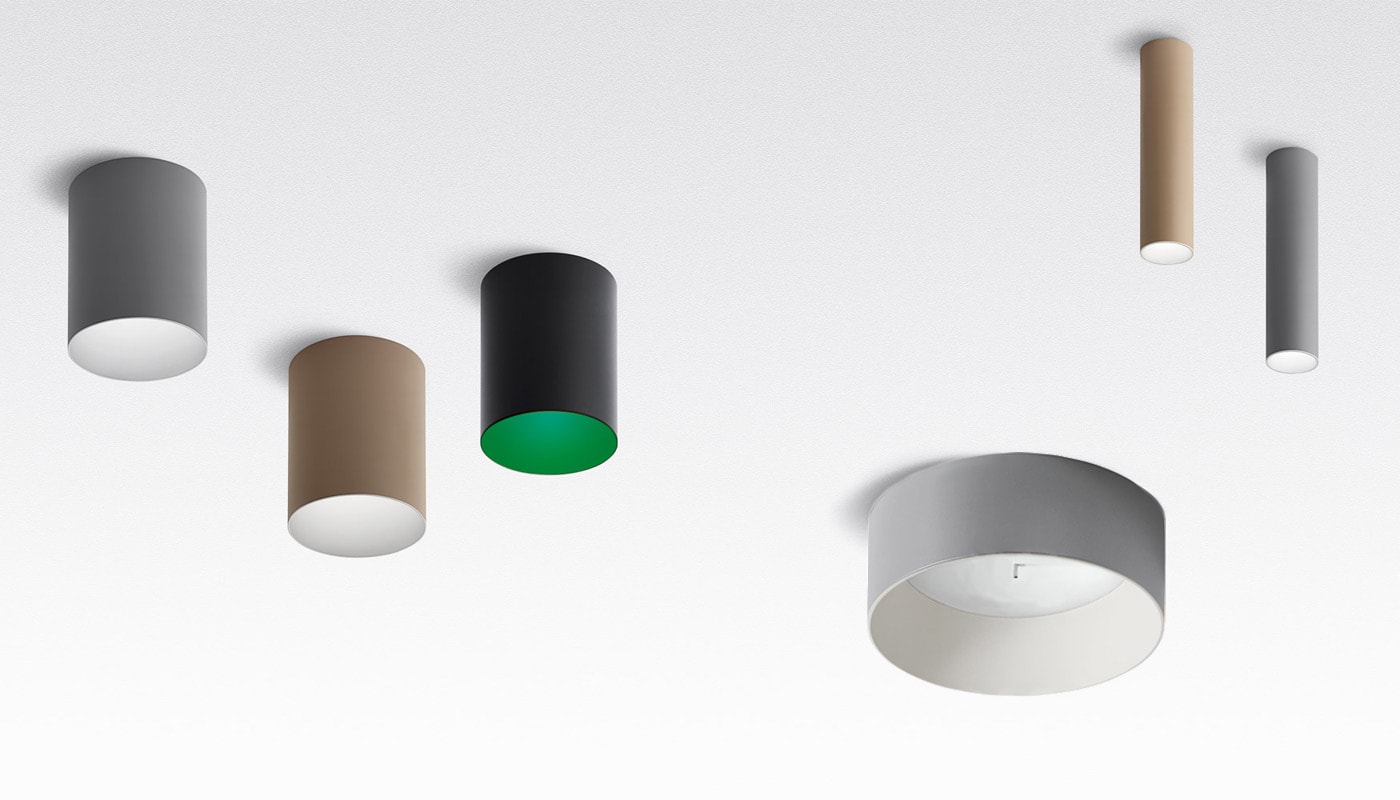 Tagora lampada a soffitto ha il corpo illuminante in alluminio, dal design essenziale e rigoroso, disponibile in diverse combinazioni di colore.
