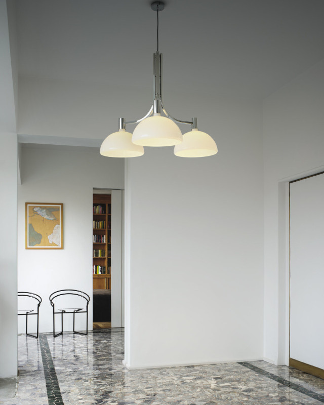 Il diffusore in vetro soffiato a mano, vero protagonista del progetto, dona alla luce una morbida sfumatura, valorizzando ogni ambiente con una presenza discreta.