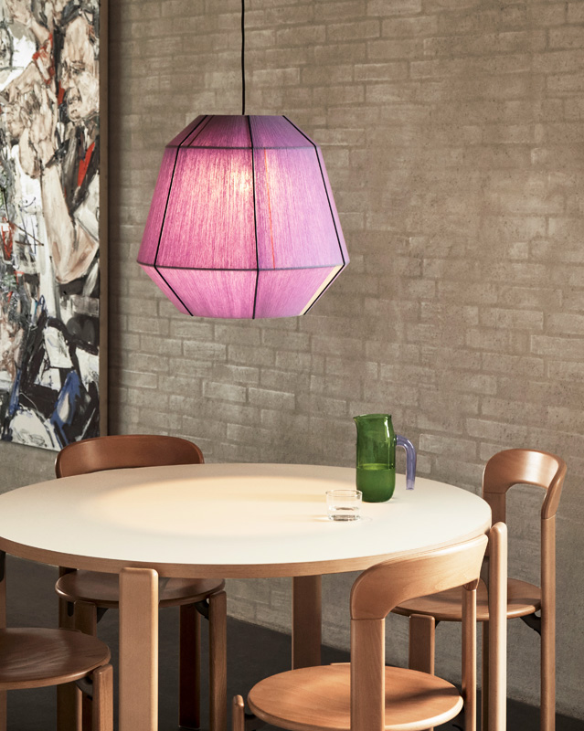 Disegnata da Ana Kraš e prodotta da Hay, Bonbon non è solo una lampada da sospensione e da tavolo per illuminare con discrezione il tuo ambiente, ma anche un oggetto decorativo unico, realizzato in modo artigianale utilizzando filati in tessuto che avvolgono la struttura del paralume in acciaio.