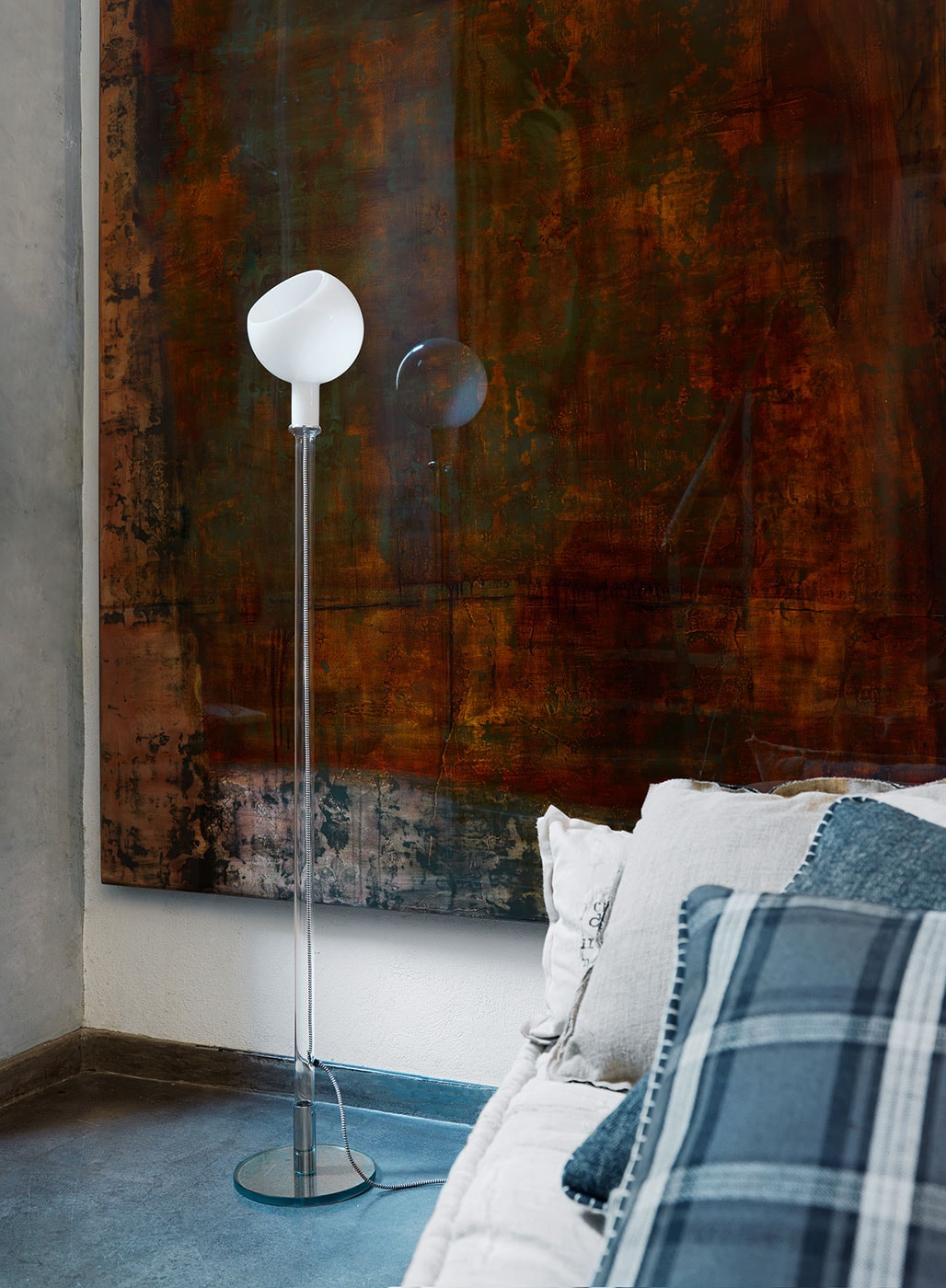 Parola lampada da terra, come anche le altre versioni, rappresenta una perfetta sintesi di lavoro artigianale abbinato ai processi di fabbricazione industriali.