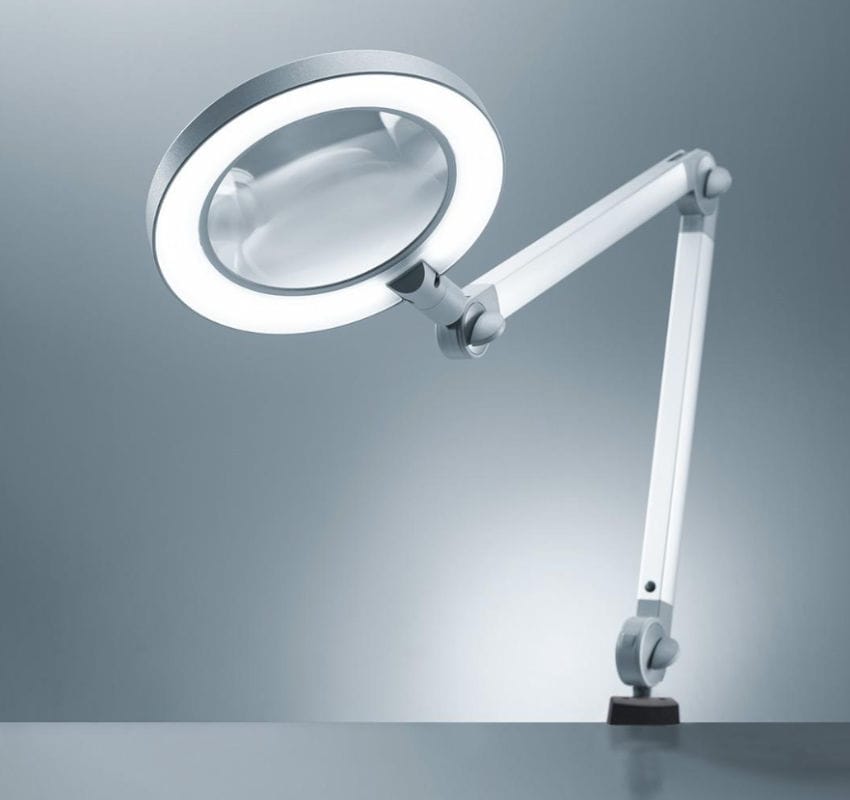 MLD di Waldmann, è una lampada da banco di lavoro dotata di lente d’ingrandimento, studiata appositamente per illuminare i tavoli per i lavori di precisione.