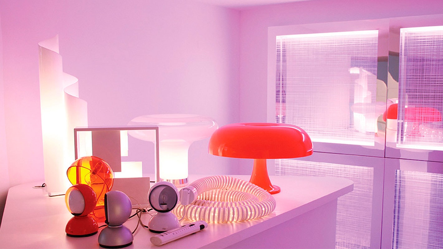 La lampada Mezzachimera di Artemide, seducente ed elegante, emette una luce diffusa e filtrata.