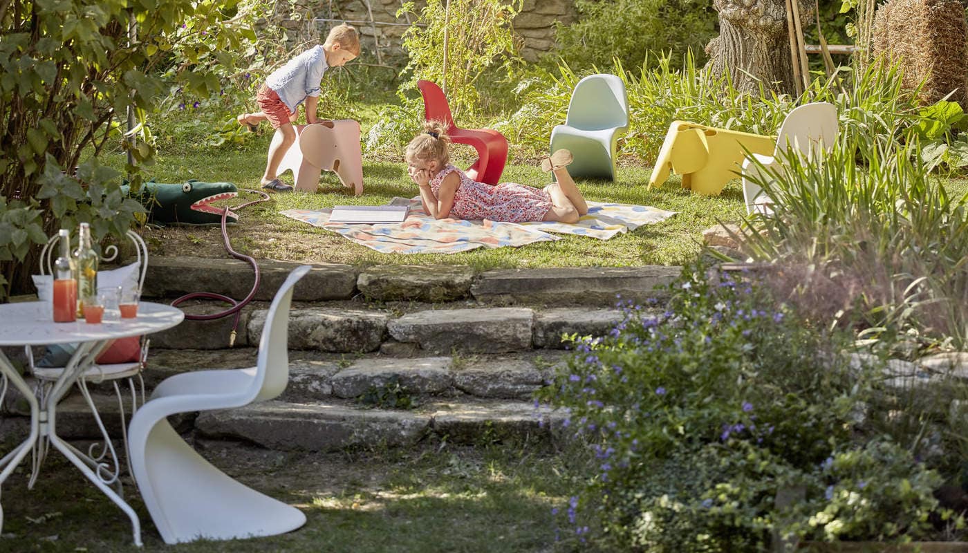 Disegnata da Verner Panton nel 1959, Panton Chair è sempre stata molto amata dai più piccoli, per la sua forma affusolata ed i vivaci colori.
