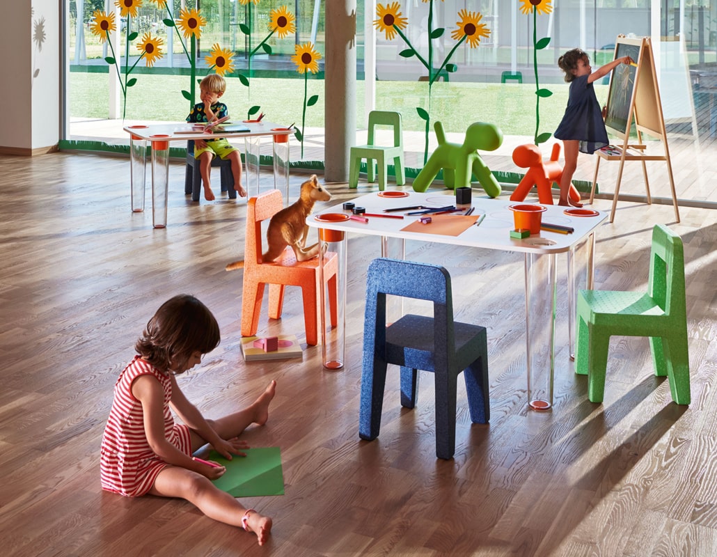 La seggiolina Pop è il primo elemento della collezione Me Too, con cui Magis ha voluto per far vivere ai bambini l’esperienza del design contemporaneo.
