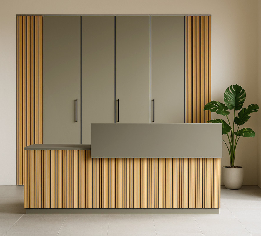 La boiserie Dress è ideale per l’arredamento di uffici operativi, uffici direzionali, reception, home office, aree lounge e attesa, sale riunioni, hall e zone living.