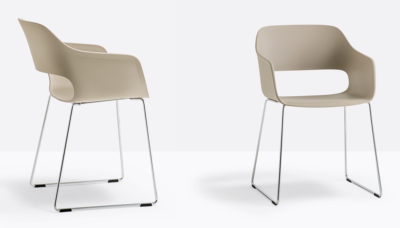 Tre le versioni di base — a quattro gambe in acciaio, in legno o a slitta — ognuna pensata per soddisfare esigenze diverse in termini di stile e utilizzo.