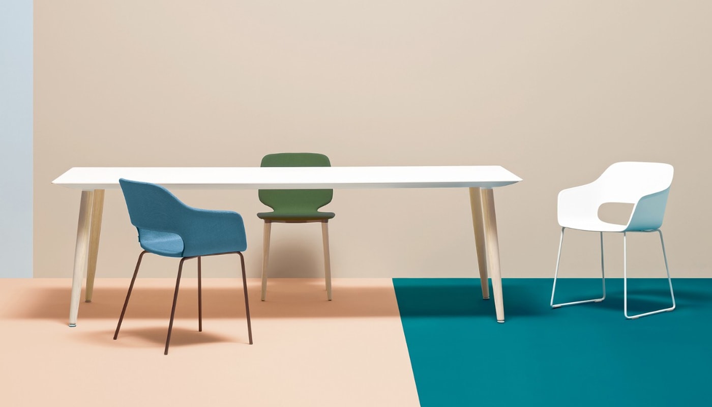 La sedia Babila arreda con personalità spazi professionali come uffici, sale riunioni, aree break e coworking, ma trova il suo posto anche in contesti di accoglienza come welcome lounge, hall e spazi hospitality.