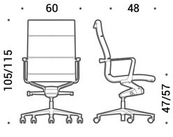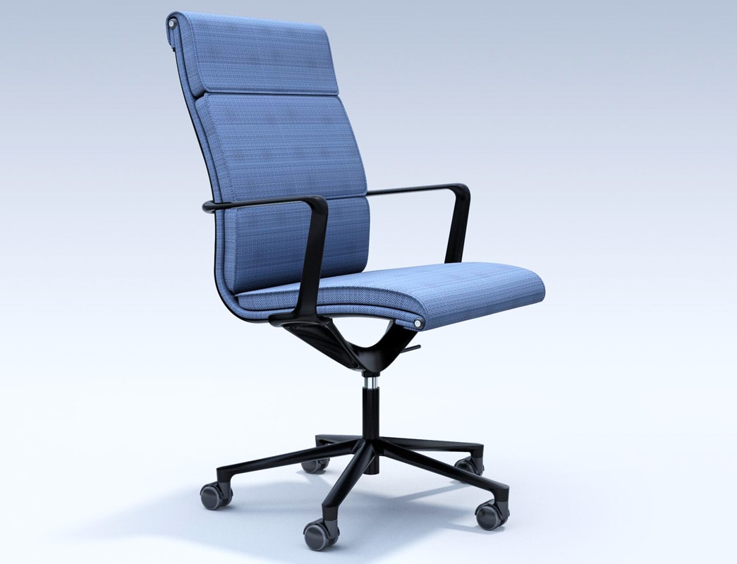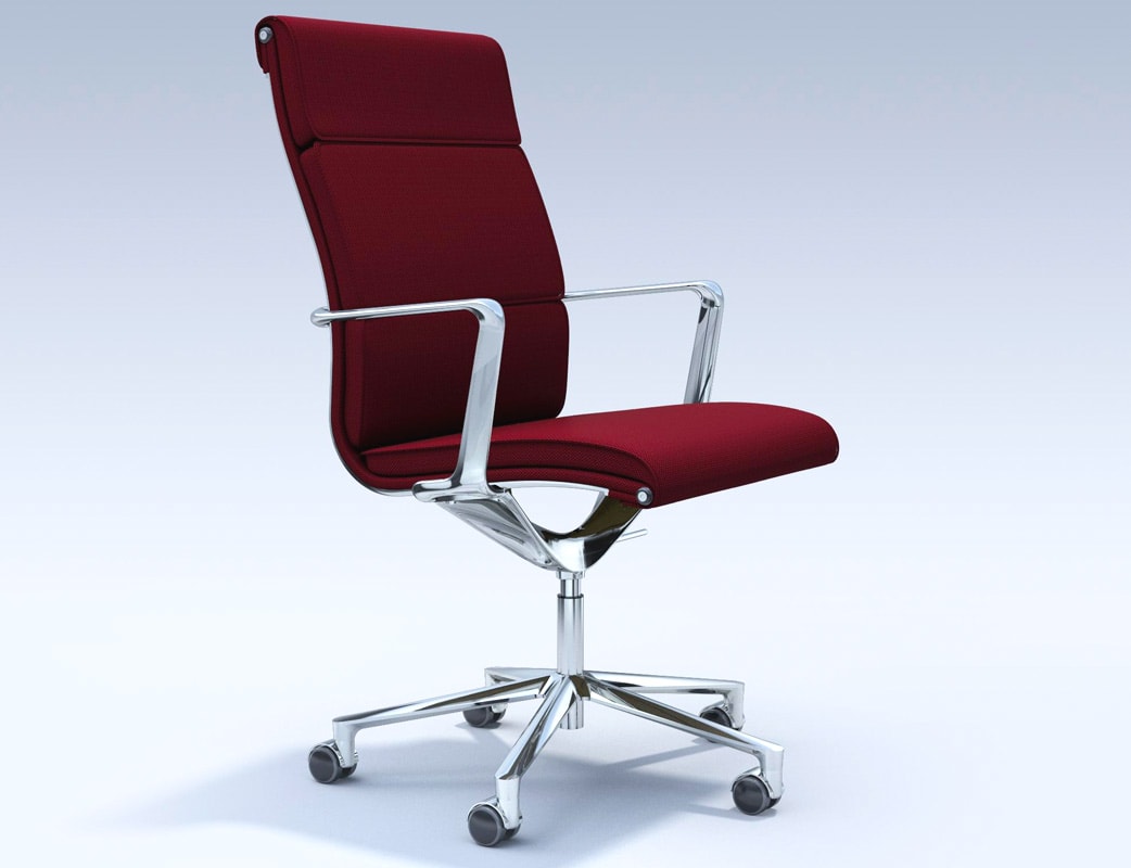 Disponibile in diverse finiture e rivestimenti, nella variante a cinque razze su ruote, la seduta è dotata di meccanismo per la regolazione dell’altezza.