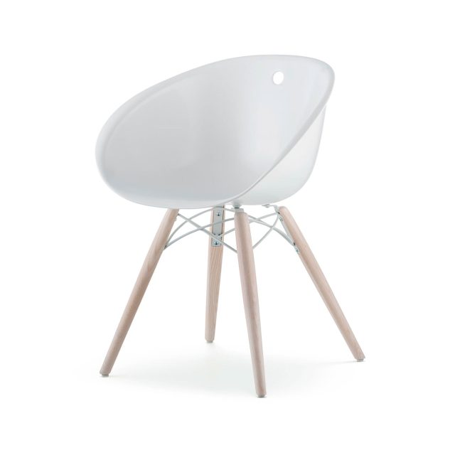 Gliss Wood, disegnata da Dondoli e Pocci per Pedrali, è una poltroncina dal design spensierato e moderno, adatto ad ogni tipo di ambiente, con gambe in frassino che conferiscono un tocco classico e un contrasto materico di grande fascino.