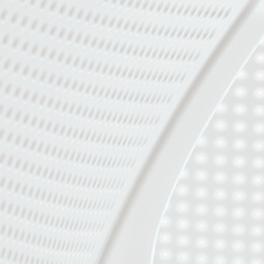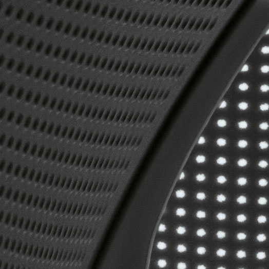 Sedile e schienale: a vista polipropilene anti UV con microfori, rivestito con imbottitura in poliuretano espanso e rivestimento in tessuto.