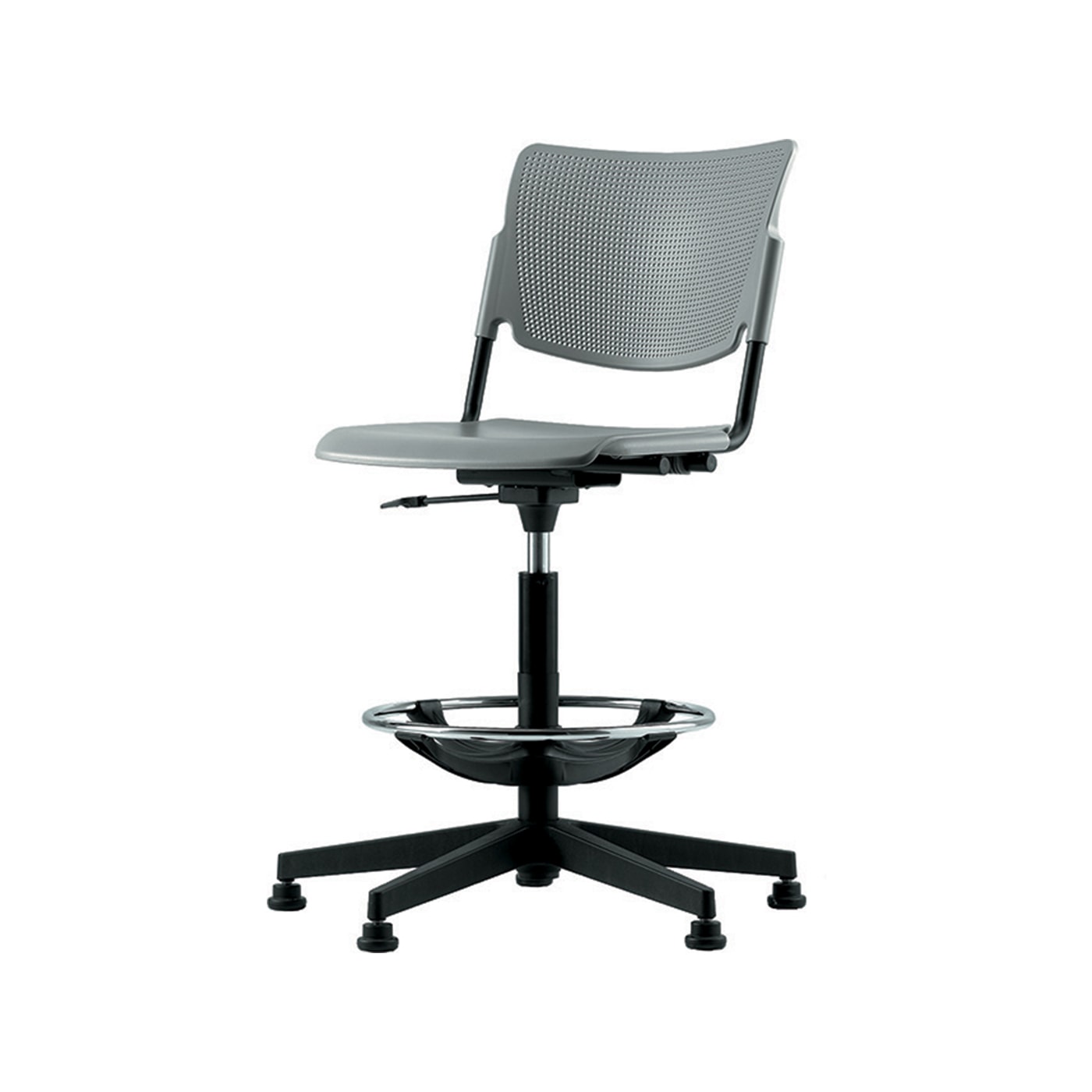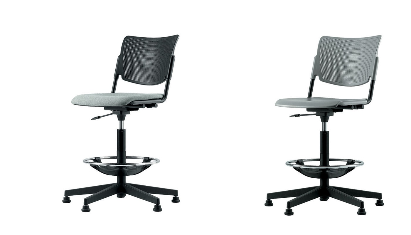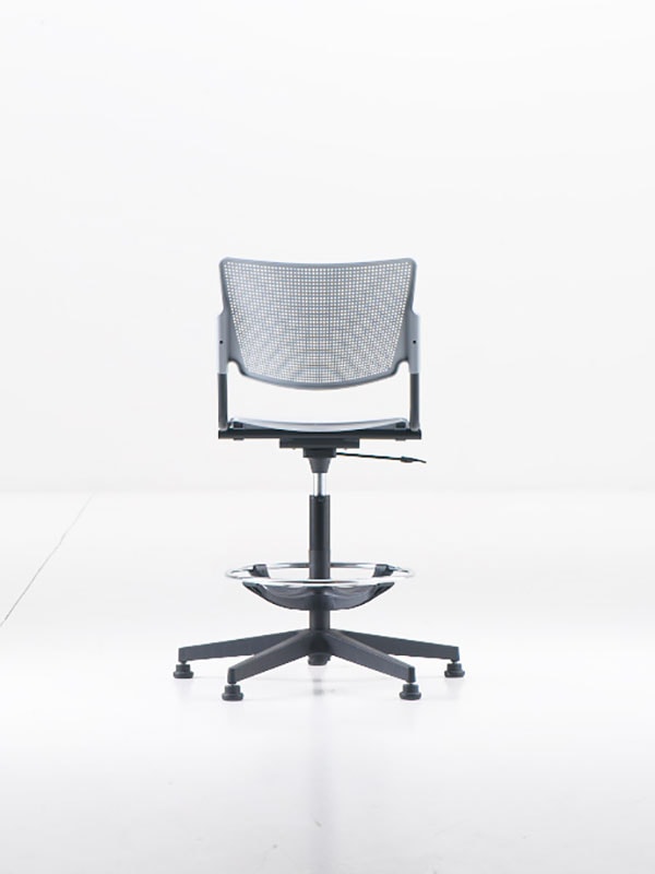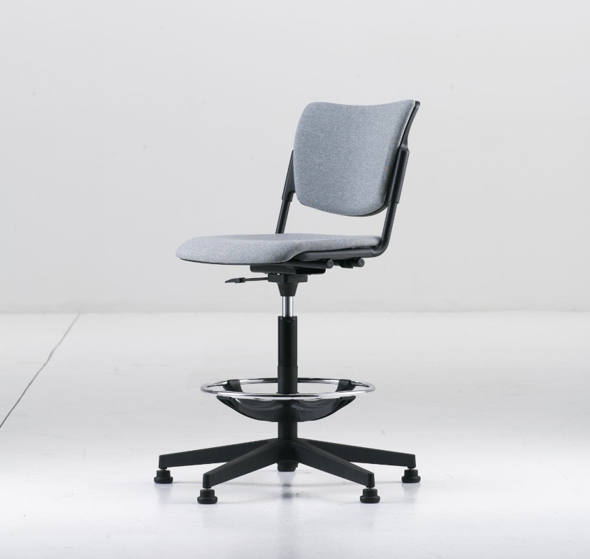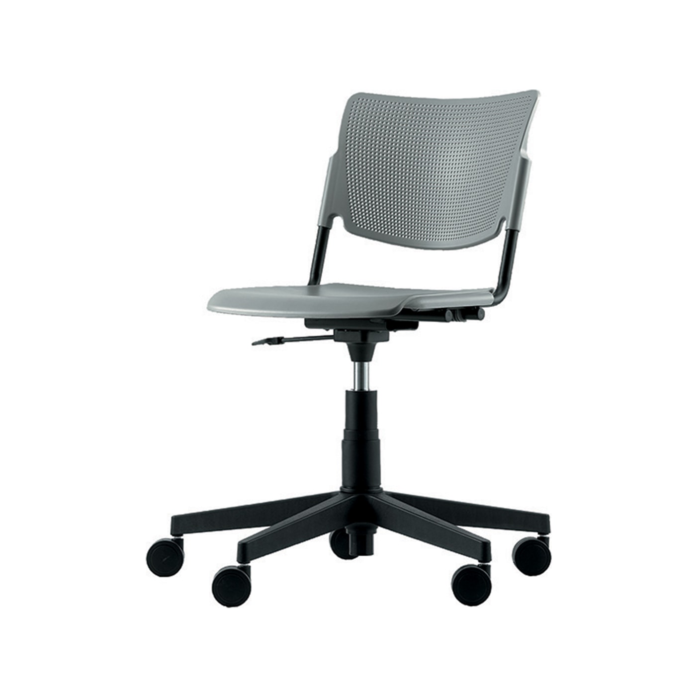 Lo sgabello girevole La Mia di Della Chiara, dotato di una base a 5 razze e alzata a gas, si propone come un complemento versatile per l’arredamento degli uffici.