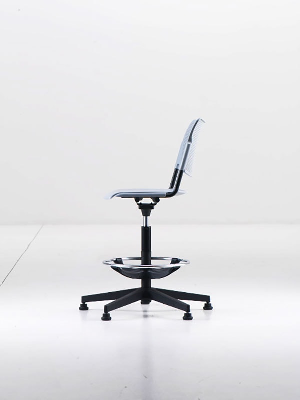 Lo sgabello La Mia di Della Chiara può essere configurato con diverse combinazioni di finiture, inclusi sedile e schienale in polipropilene anti-UV, che garantiscono un’eccellente traspirazione grazie ai microfori integrati.