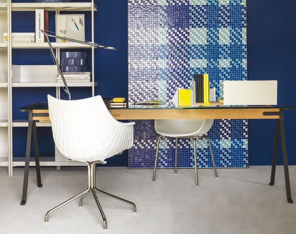 Le mille nervature che riflettono la luce, il gioco delicato dell’intelaiatura, la trasparenza attraversata dalle sfumature di colore fanno di Meridiana la seduta perfetta per la sala riunioni, in uno studio o in ufficio.