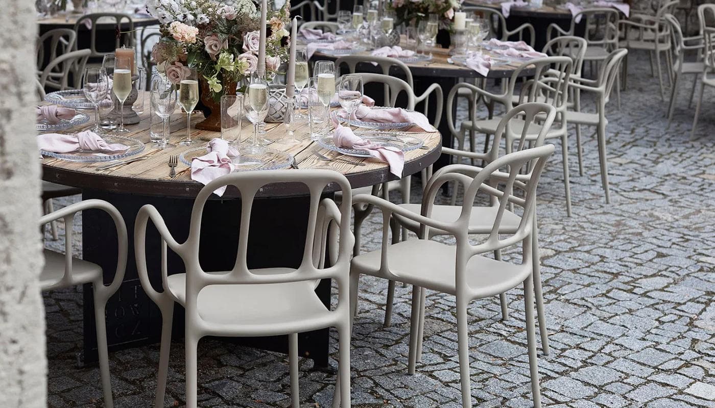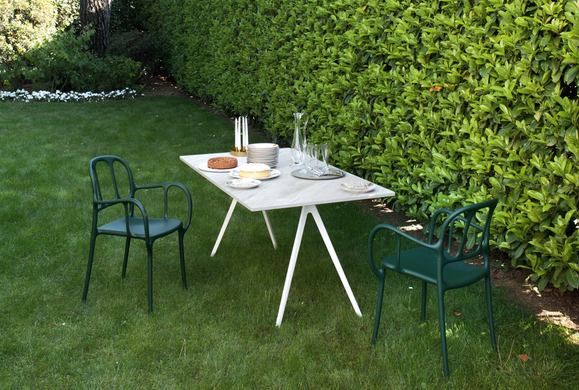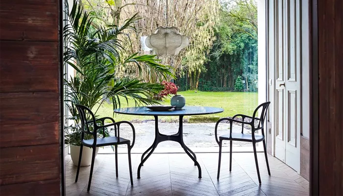 Linee suadenti e ariose per questa sedia impilabile ideata da Jaime Hayón e realizzata da Magis.