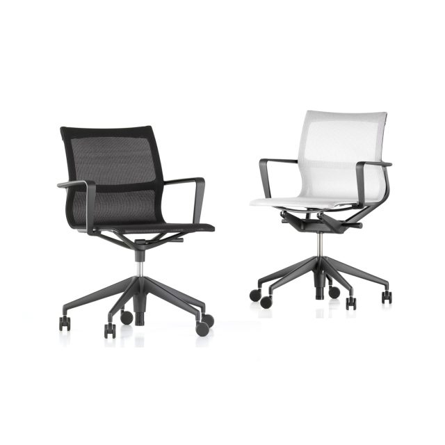 Physix è disponibile come sedia girevole da ufficio nella versione Studio, minimalista e funzionale, oppure nella versione Conference con basamento a quattro razze su piedini, ideale per le sale riunioni.