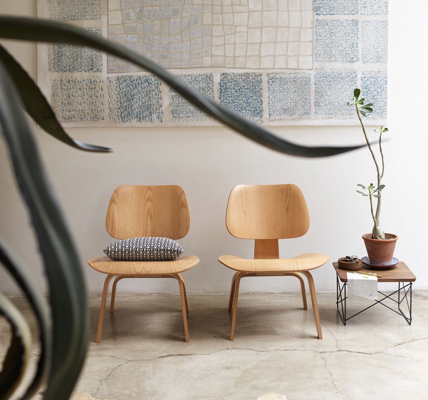 Nel loro prolifico periodo di sperimentazione, gli Eames trascorsero diversi anni a studiare il modo di usare il legno multistrato per capire come adattarlo alla forma del corpo umano. LCW è frutto di quell’epoca del design: una poltroncina lounge dalla scocca accogliente, con uno schienale leggermente flessibile, dalle fattezze curvate e dinamiche, particolarmente esaltate nelle sagome delle quattro gambe.