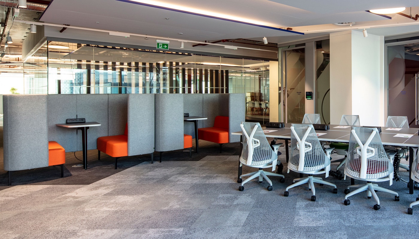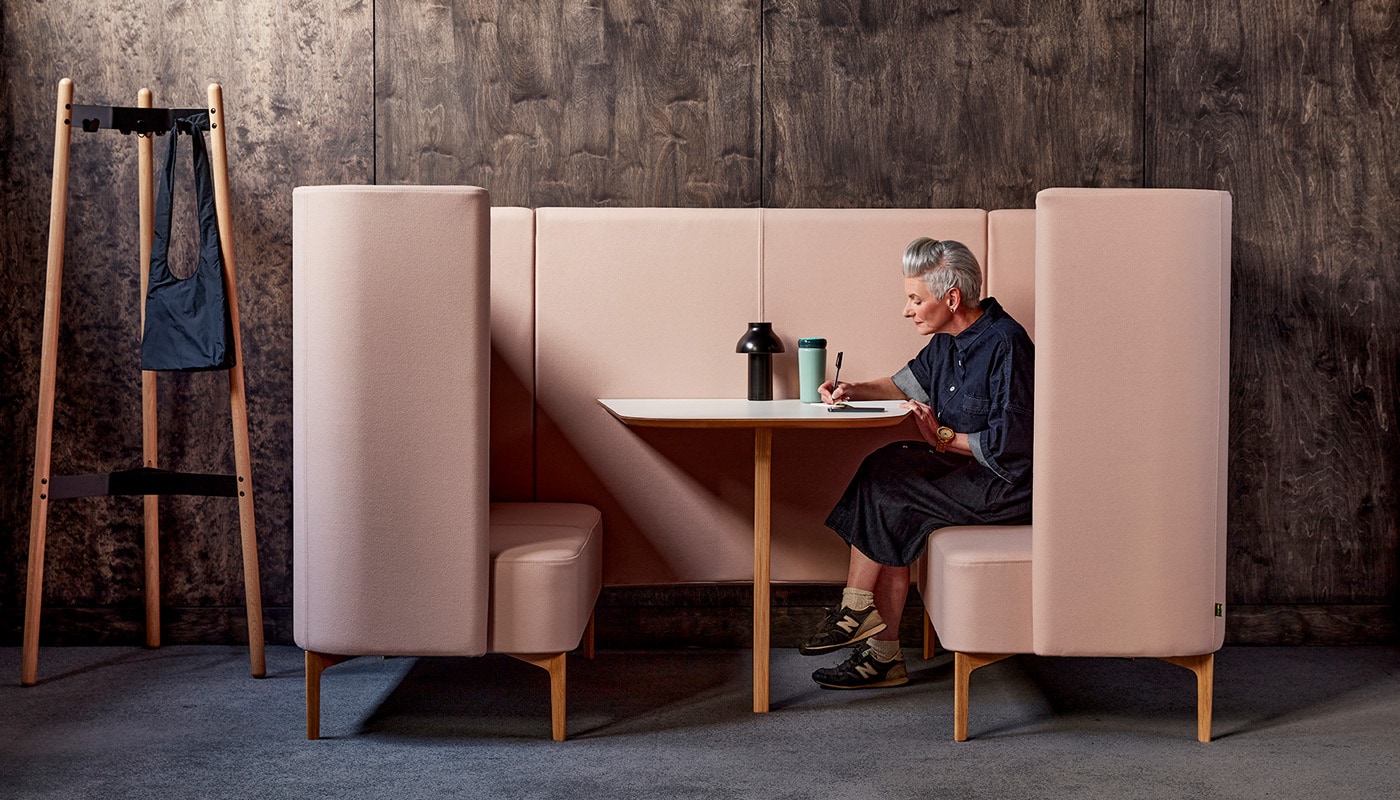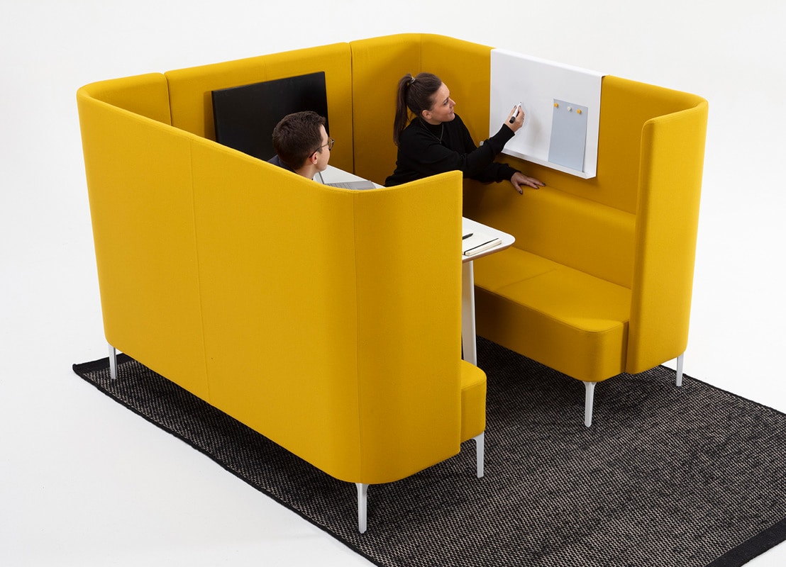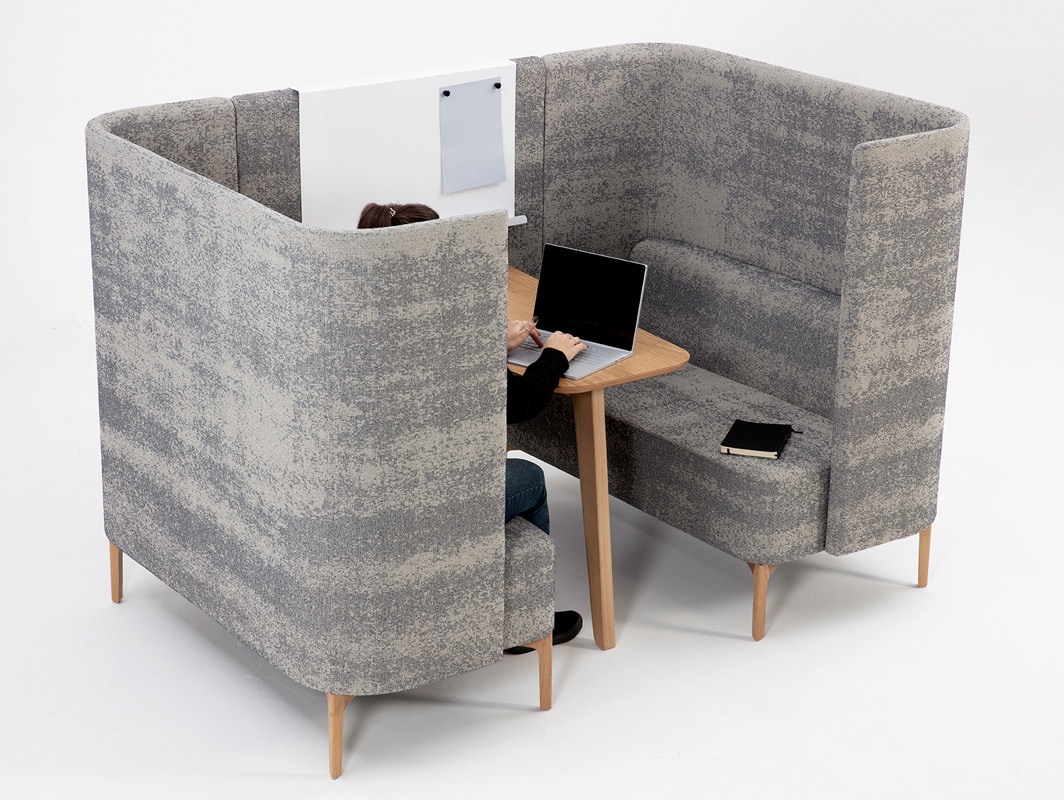 Pullman Booth, postazione operativa fonoassorbente del brand naughtone, è uno spazio di lavoro pensato per offrire privacy, comfort acustico e aiutare la concentrazione.
