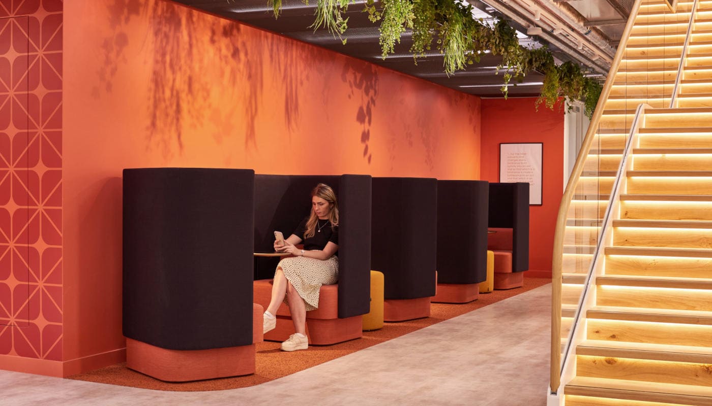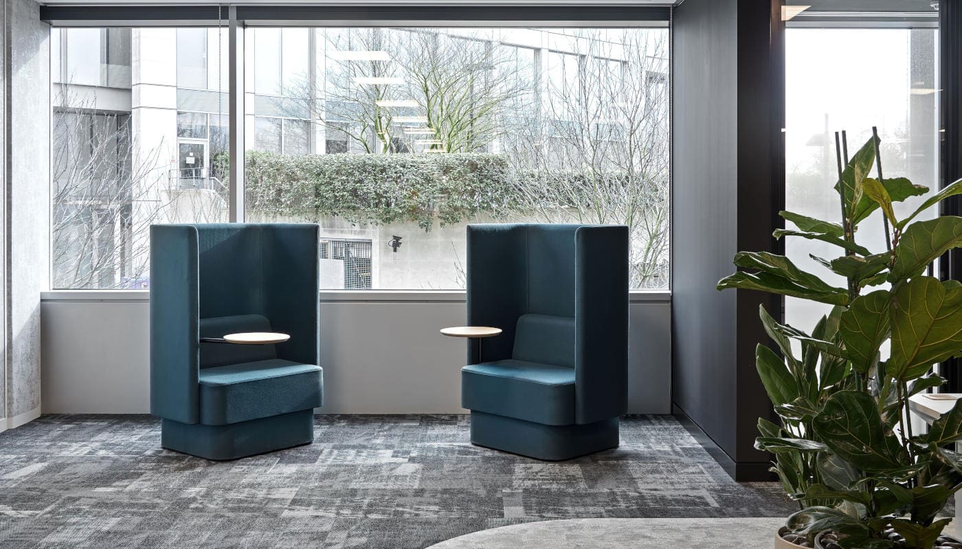 La seduta Pullman Chair offre un comodo spazio di lavoro privato grazie al pannello acustico integrato.