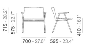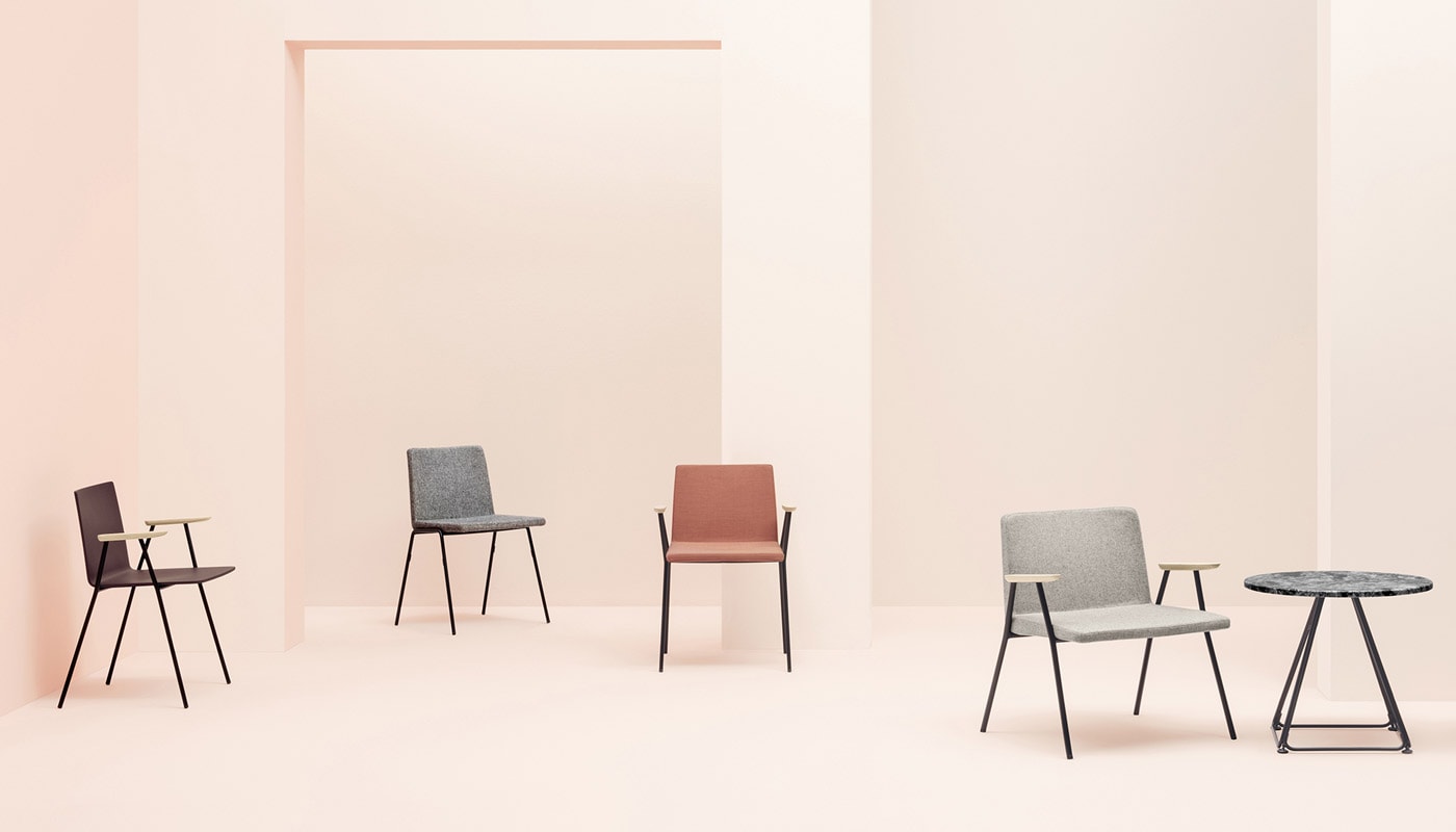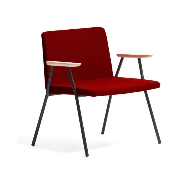 La struttura in acciaio verniciato con braccioli in frassino massello unisce solidità e leggerezza visiva, conferendo carattere e naturalezza al prodotto.